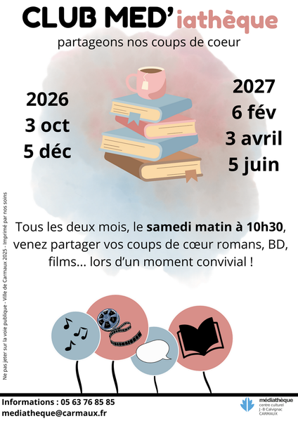Tous les deux mois, autour d'un café, le samedi matin à 10h30, venez partager vos coups de cœur romans, BD, films, musique... lors d'un moment convivial !